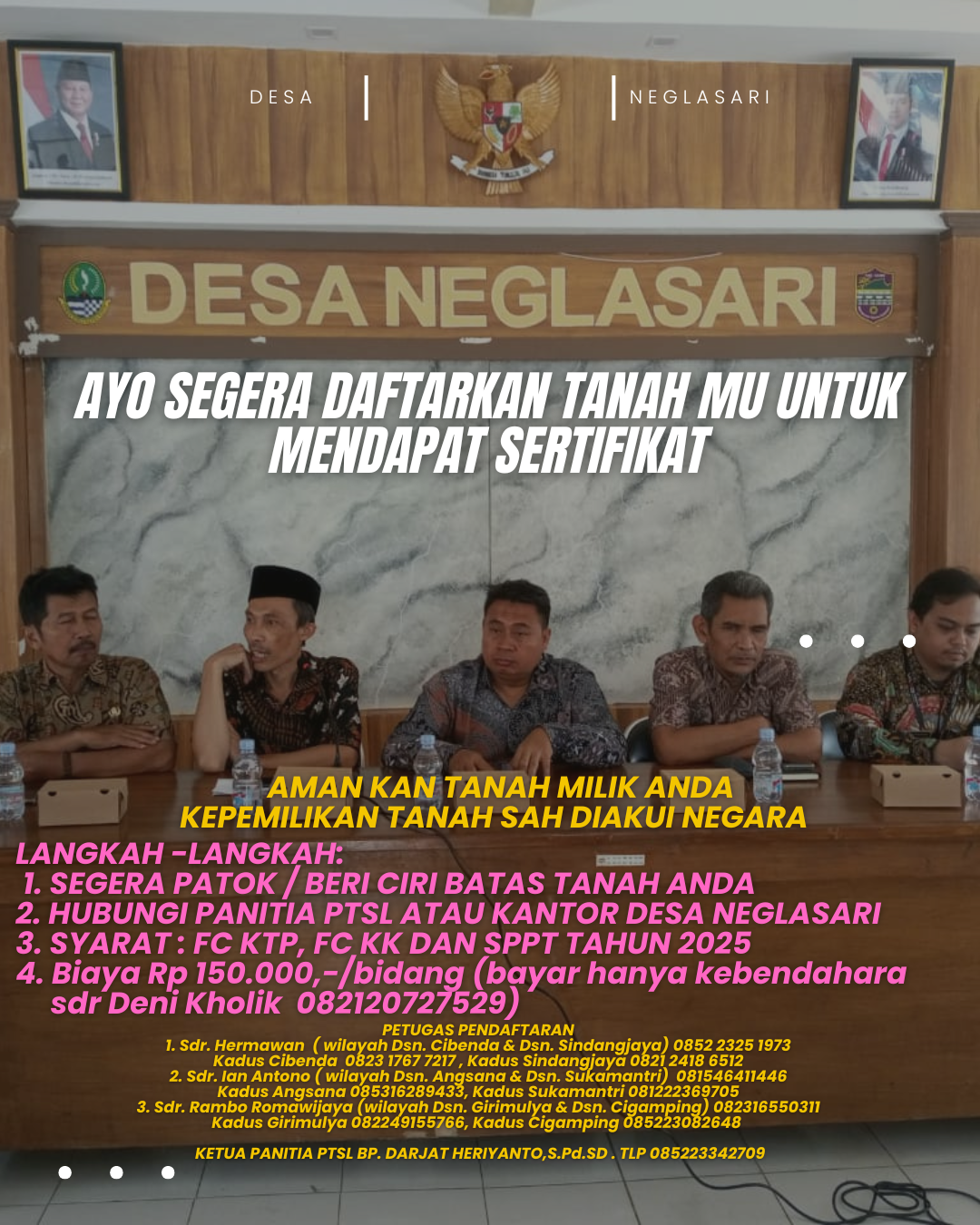 Selain dari Dana Desa Pemerintah Desa Neglasari bekerja sama dengan UPZ Desa Neglasari membangun 2 (dua) Unit rumah. sehingga pada tahun 2024 sudah terehabilitasi rumah tidak layak huni sebanyak 7 (tujuh) rumah.